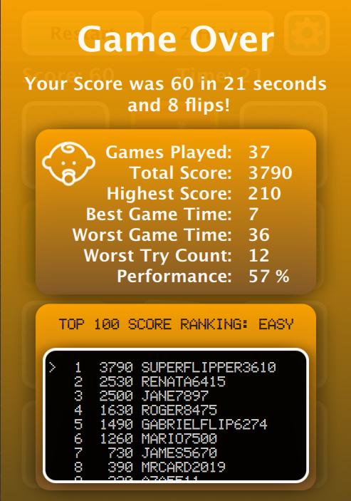 - Leernboard mit den besten 100 Punkten für jeden Schwierigkeitsgrad.