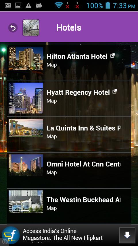 La aplicación Atlanta Airport le proporcionará información completa sobre Milán, los diversos hoteles según sus presupuestos, atracciones como Zoo Atlanta/Cyclorama, Atlantic Station y Atlanta History Center, Woodruff Arts Center y muchos más. Los hoteles aquí muestran la antigua realeza oculta y están hechas exclusivamente. Hilton Atlanta Hotel, Hyatt Regency Hotel, Westin Buckhead Atlanta solo por nombrar algunos. La aplicación Atlanta Airport resolverá todas sus preguntas al turismo en Atlanta y lo ayudará a pasar unas vacaciones relajadas y sin tensión al mismo tiempo.