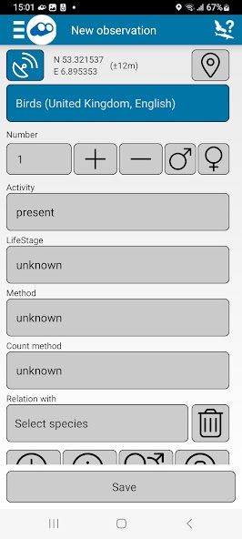 ObsMapp es el cuaderno digital del entusiasta de la naturaleza. Con ObsMapp puede enviar todas sus observaciones de naturaleza directamente desde el campo. Todas las observaciones se vinculan automáticamente a la hora actual y la ubicación GPS. Después de su viaje de campo, puede cargar sus avistamientos a uno de los portales vinculados. Esto es posible desde el campo utilizando la conexión a Internet de su dispositivo, pero también desde la red WiFi de su hogar.