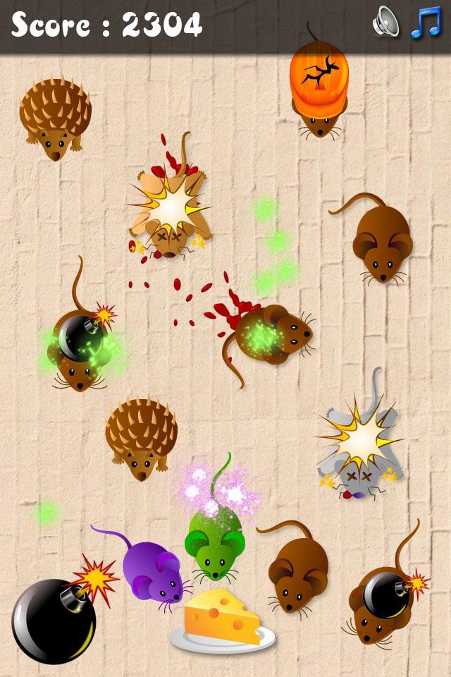 Un gran grupo de ratones de origen desconocido invadió su granja. Siendo propietario de una granja de queso, es hora de pararse y defender su hogar. Ahora, solo tú puedes detener a estos ratones codiciosos. ¿Tu reacción es lo suficientemente rápida? Tocando rápidamente con los dedos, golpeando, moliendo y repeler estos ratones. Destruir un grupo haciendo sabiamente el mejor uso de sus poderosas herramientas, como bomba, fuego y relámpagos.