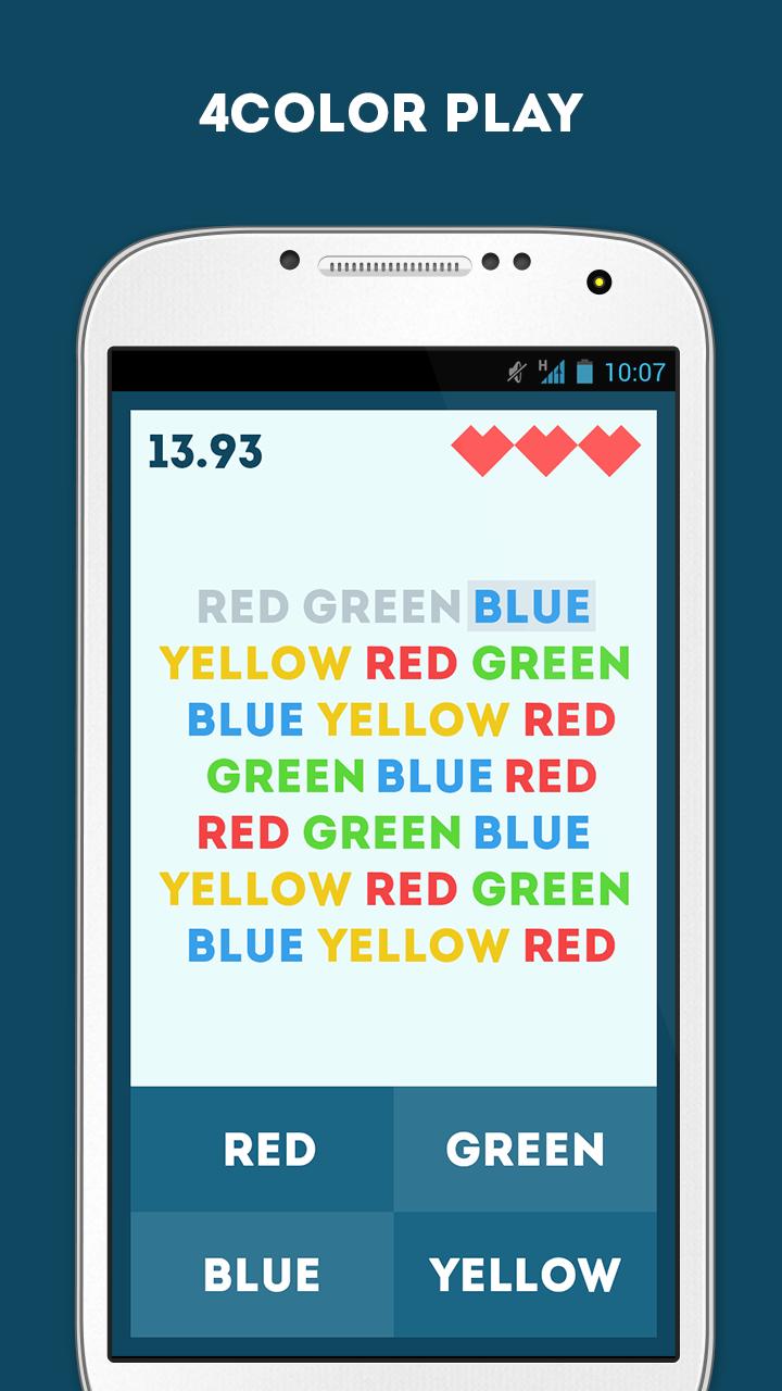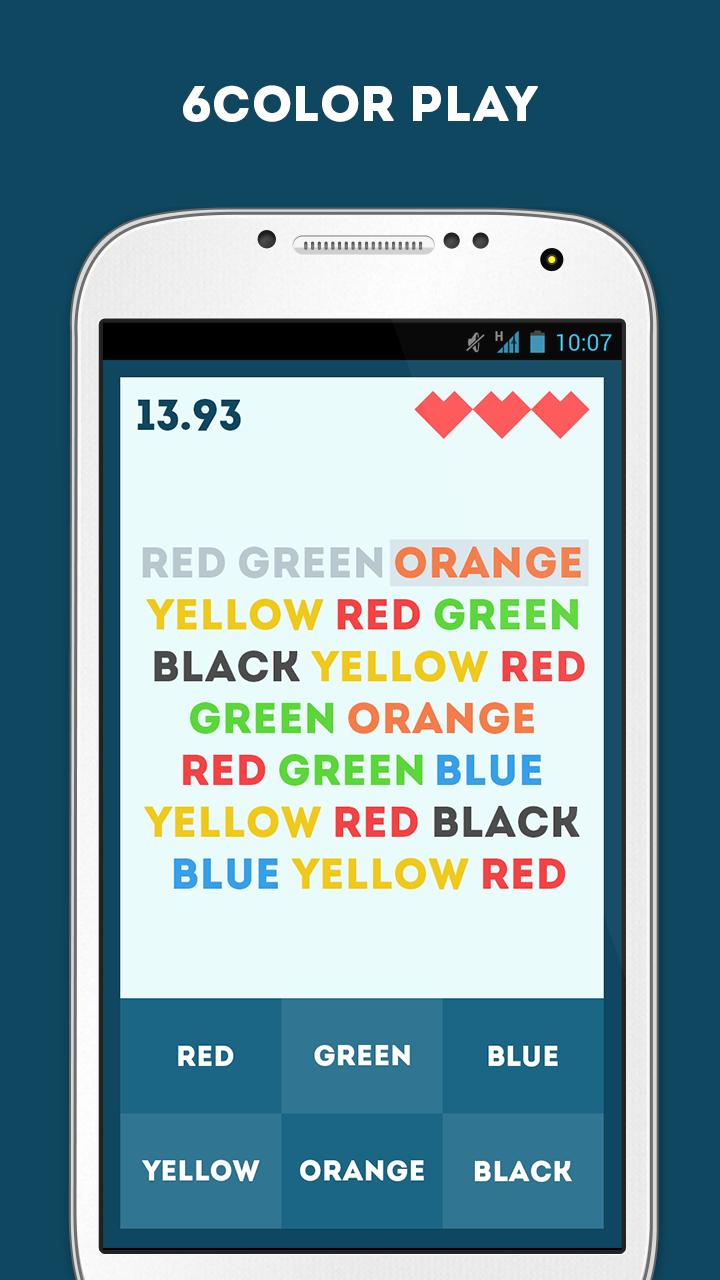 En el juego, el jugador debe eliminar 20 palabras en 30 segundos. Si cree que 4 modo de color es demasiado fácil para usted, intente un modo de color 6 más desafiante.