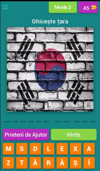 En este juego debes adivinar que los países de cada nivel reconocen la bandera. Las letras son muy fáciles de colocar en los espacios vacíos, esto se realiza con un solo clic. Si cree que cometió un error, simplemente haga clic en la carta que estaba mal. Si te quedas sin puntos, siempre puedes compartir el menú y serás recompensado con muchos puntos. Este juego está dirigido tanto a los jóvenes como a los más aprendidos a medida que entrena la mente y mejora el conocimiento. El juego es entretenido y divertido.