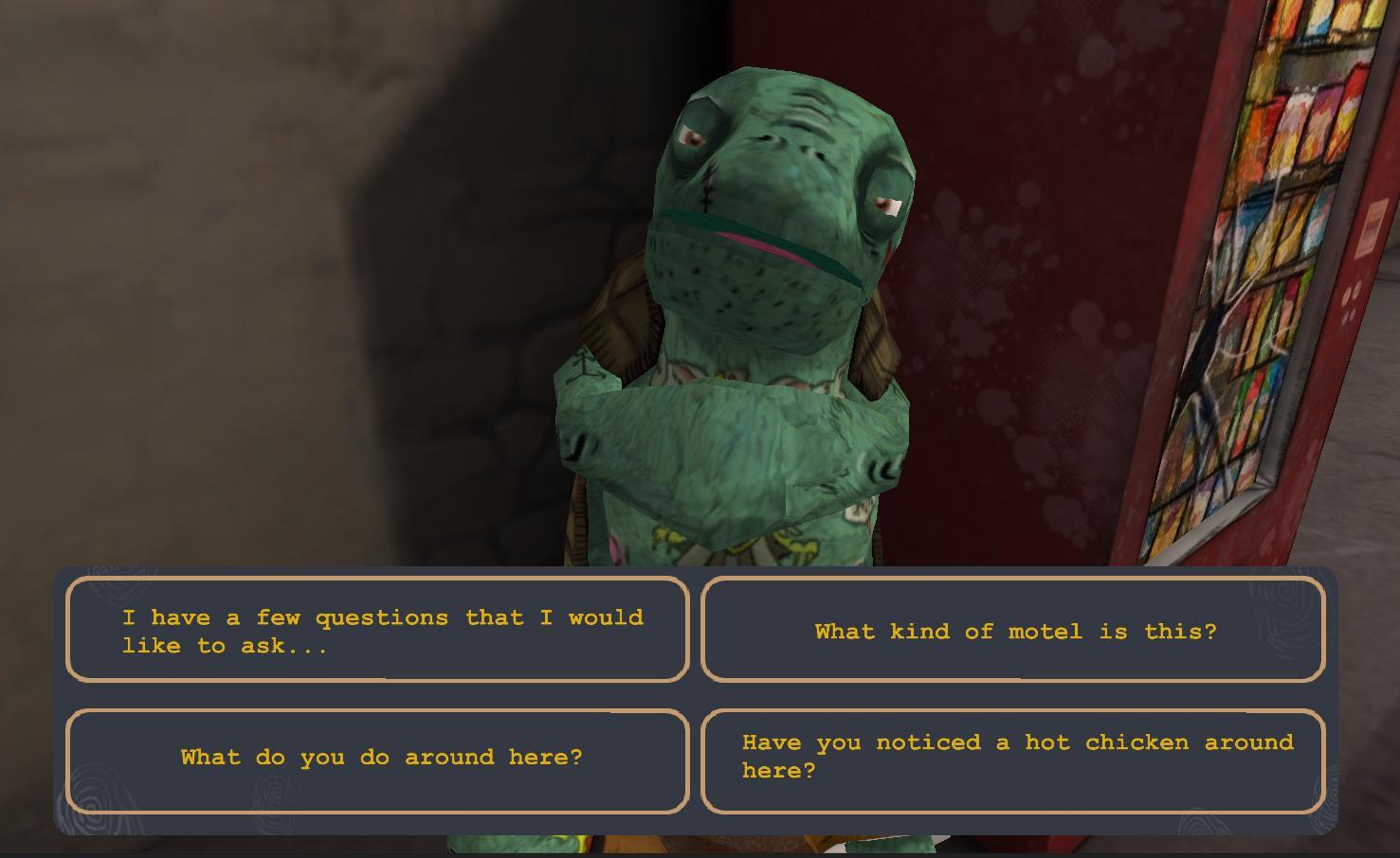 A Darker Shade of Red es un juego de aventuras de apuntamiento y clic completamente completamente de jazzy, llena hasta el borde con humor negro y personajes sombríos. Ayude al investigador privado Mulder a resolver el caso, explorando el antiguo motel, ayudando a los residentes y finalmente confronta al antagonista.