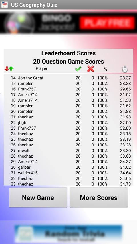 El juego US Geography Quiz Probará su conocimiento de los puntos de referencia, estados, capitales, desiertos, lagos y parques de los Estados Unidos. Un gran juego educativo para los estudiantes.