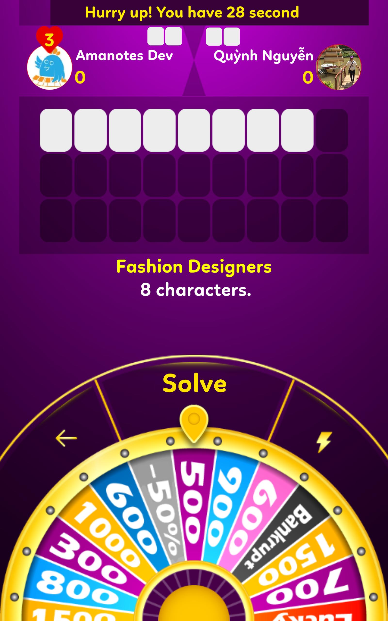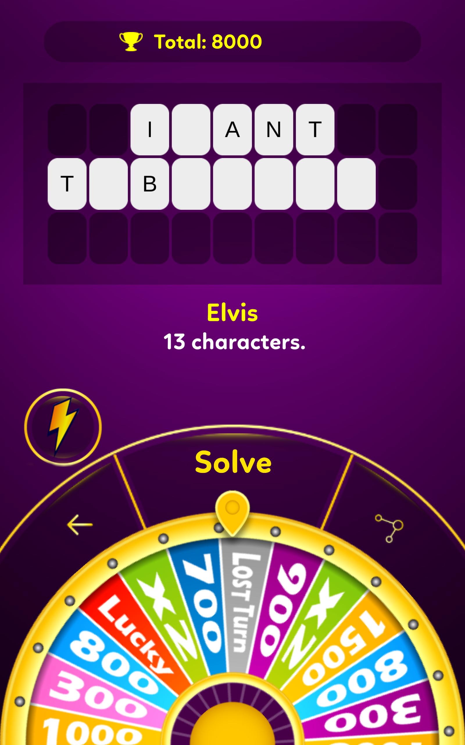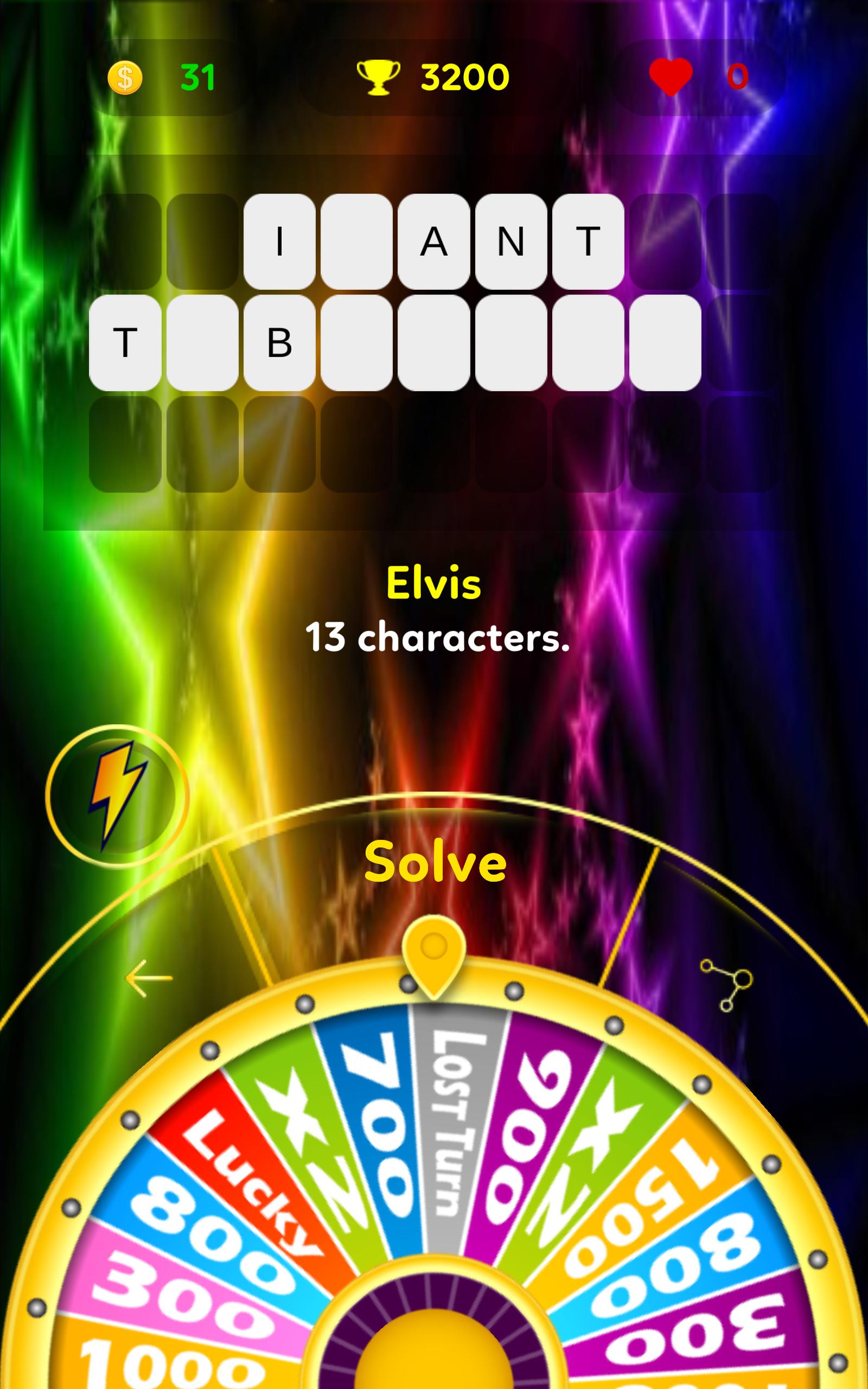 ¿Escuchado sobre Wheel of Fortune? Sí, tienes razón, es Wheel of Fortune con algunas experiencias mágicas. Gira la rueda mágica para probar tu suerte uniéndose a este fascinante viaje de juego junto con tus amigos y familiares. El programa de juegos es difícil de ganar. No se trata solo de una cuestión de fortuna, sino también de la mente genial. Este juego es muy simple. A medida que la rueda gira, obtienes una frase en la pantalla. Simplemente adivine las letras y forme una frase de palabras para ganar recompensas. Su fortuna decide la frase que obtienes y tu mente maestra es responsable de formar la frase. Sé el maestro de los rompecabezas y escribe tu propia fortuna.