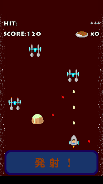 Cuando toca un botón de descarga de la pantalla inferior, se dispara una bala de chalota en escabeche.