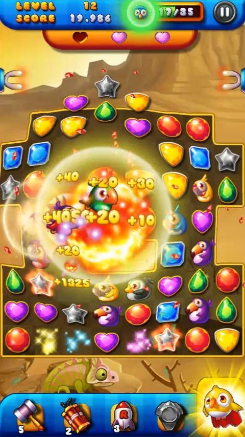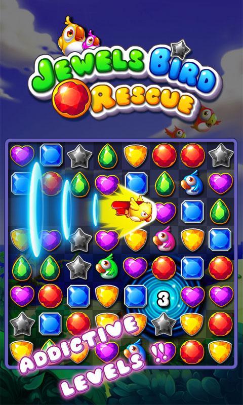 Jewels Bird Rescue es un divertido juego de rompecabezas 3 de amor. Necesitas combinar pájaros con las mismas joyas para liberar las lindas pájaros. ¡Serás adicto al " Jewels Bird Rescue " del primer éxito!