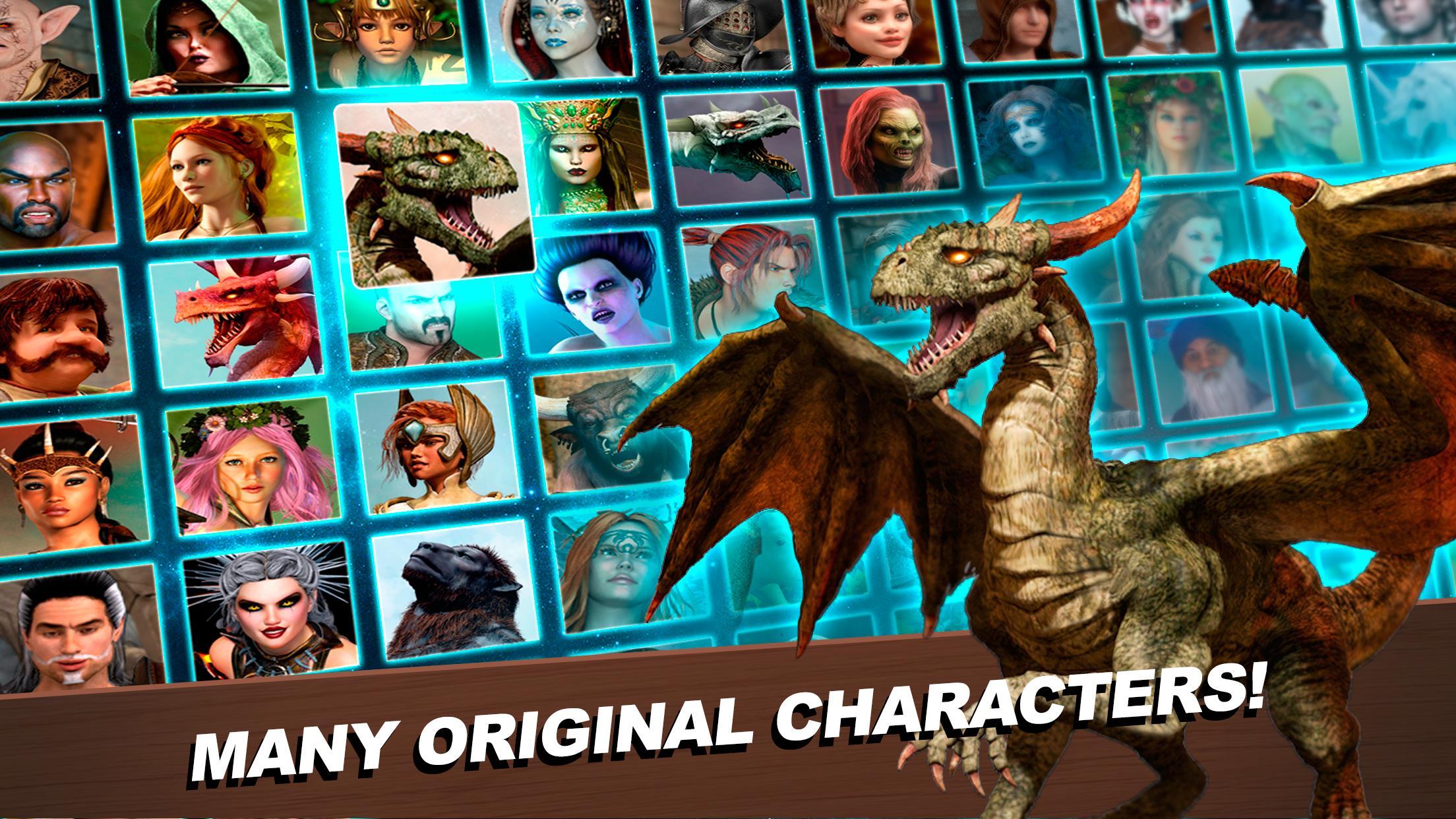 - Recopile una colección de cientos de personajes: dioses, dragones, magos, monstruos, héroes antiguos de espada y magia, gnomos, hadas, criaturas mágicas y criaturas invisibles