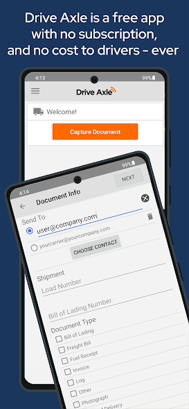 No subscriptions - Drive Axle is a free app with no hidden fees, and no cost to drivers. We don't limit your document scans, or put any features behind a paywall.