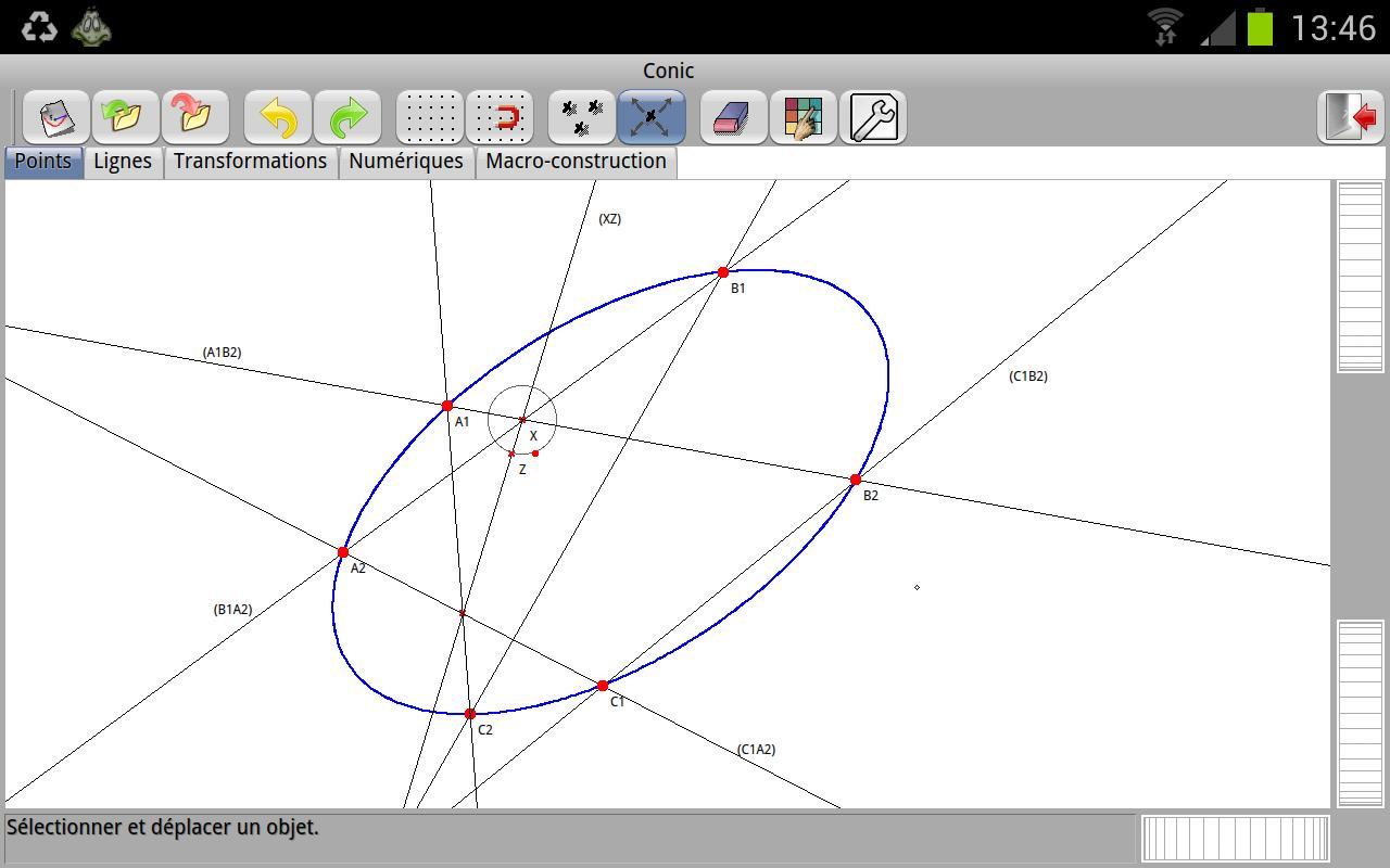 - Jouez avec le trammel d'Archimède pour dessiner Ellipse.