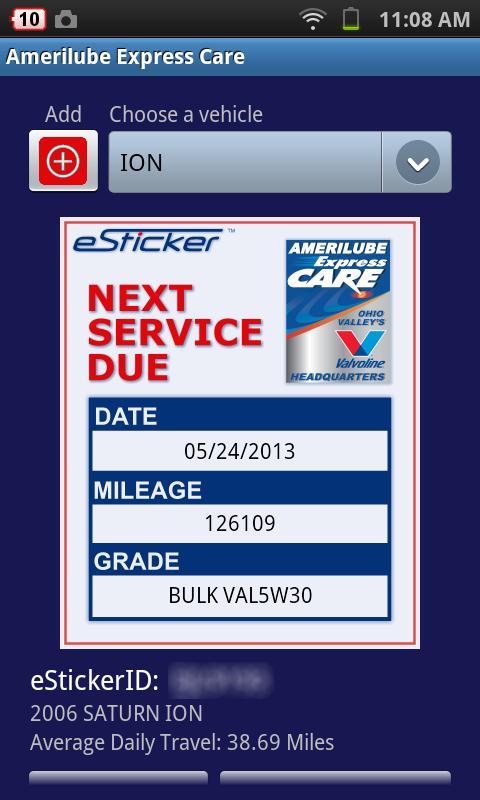 Gardez l'autocollant de rappel de changement d'huile de votre véhicule sur votre téléphone intelligent ou votre tablette. Scannez simplement l'EstickerId imprimé sur votre réception de soins AmeriLube Express ou entrez le VIN de votre véhicule pour l'ajouter à votre liste.