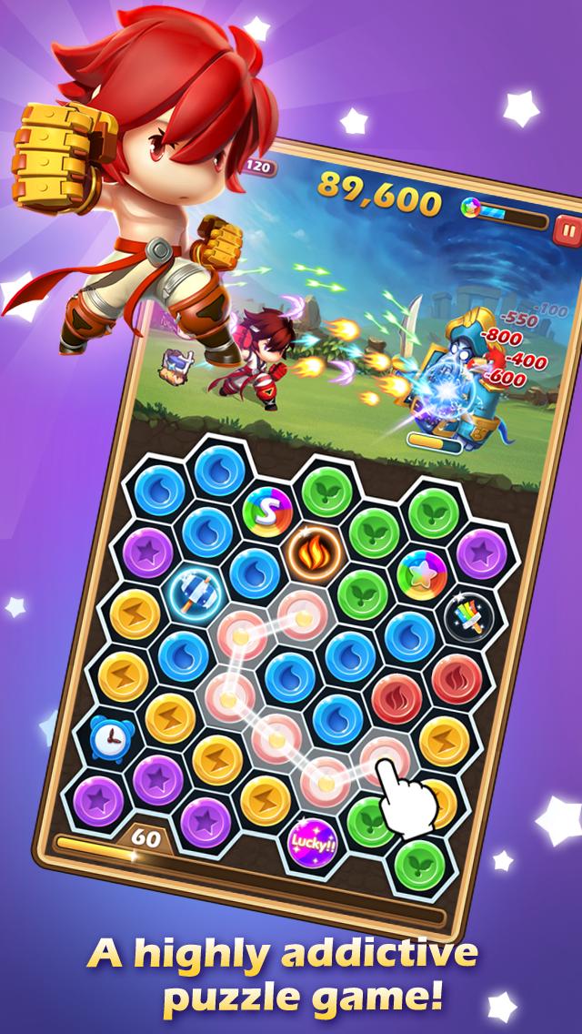 - Dessinez des lignes pour rejoindre 3 blocs connectés ou plus de la même couleur qui exploseront et endommagera les monstres