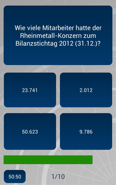 Le 125e anniversaire Rheinmetall présente cette application de quiz passionnante.