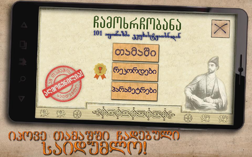Hangman géorgien avec des aphorismes à Rustaveli (en géorgien)