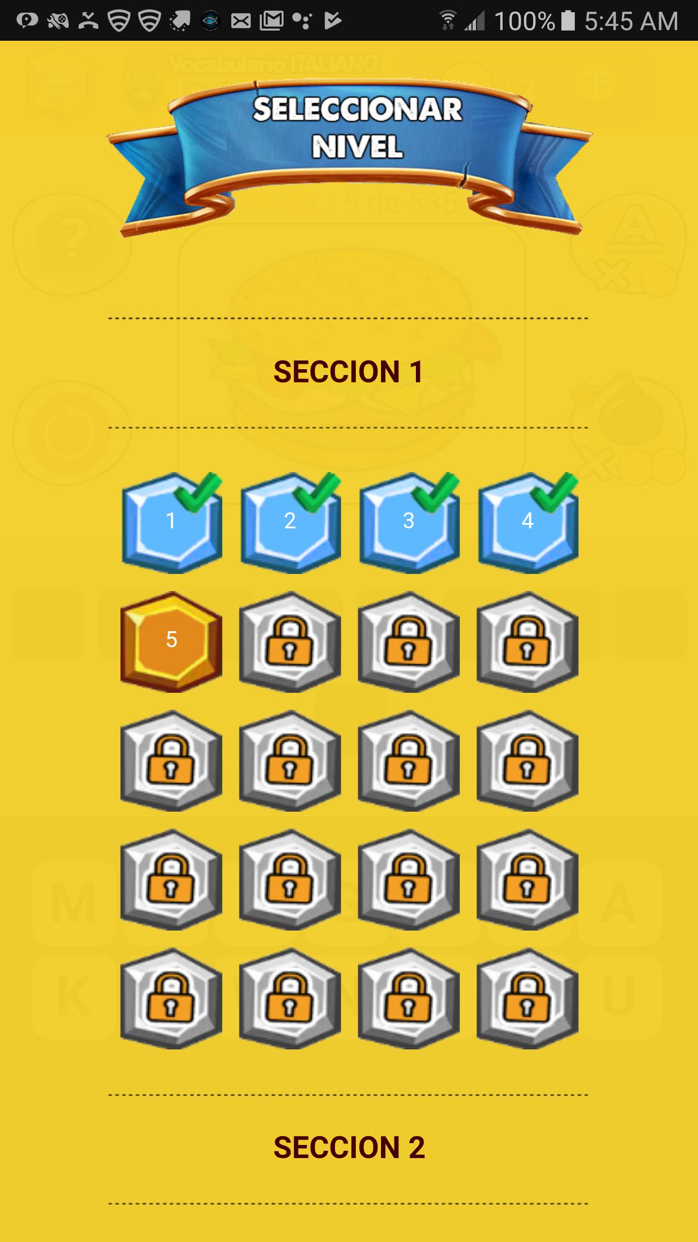 En plus d'examiner votre niveau italien, cette application vous permet également d'apprendre facilement les mots italiens via des cartes graphiques même avec la possibilité d'écouter la prononciation de chaque mot en italien, vous pouvez également révéler les lettres que vous ne connaissez pas, à travers les devises qui gagnent ou agruegues dans le même jeu.