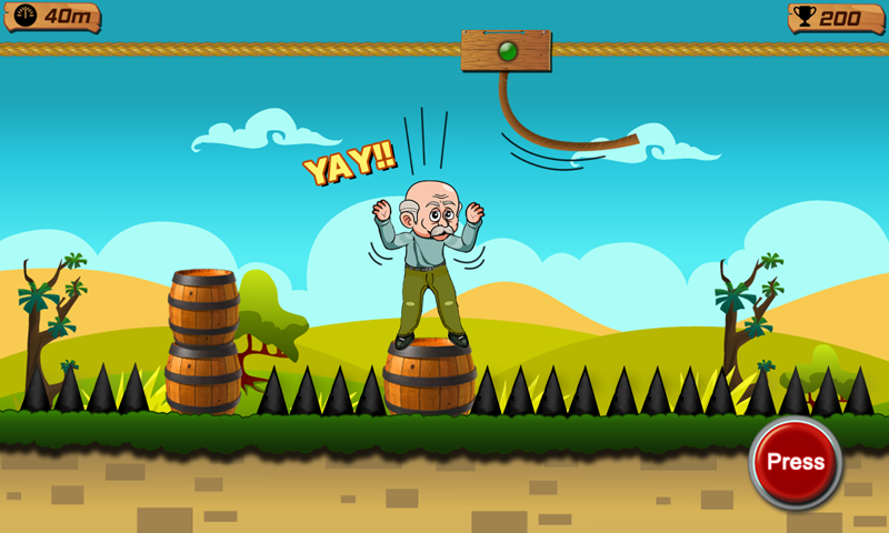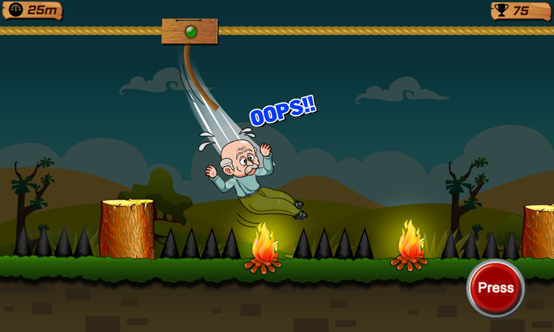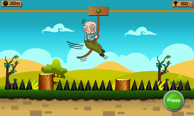 Les commandes sont très faciles. Lorsque grand-père est sur la corde, appuyez sur le bouton pour glisser sur la corde et relâchez pour sauter sur le journal en bois. Vous devez sauter sur tous les journaux donnés pour passer à la partie suivante.