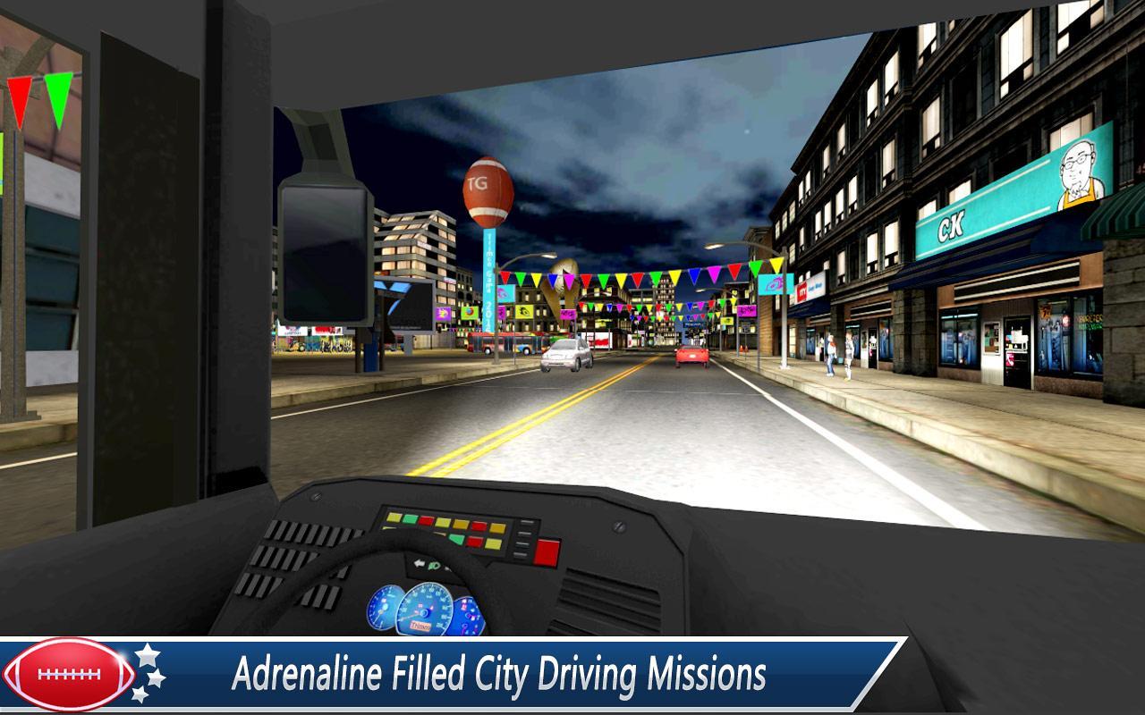 Votre mission en tant que chauffeur de bus de la ville s'assure que tout le monde arrive à l'arène de football américaine à temps pour le coup d'envoi. Tous les gens de la ville sont habillés et prêts pour une action de football américaine en direct. En tant que chauffeur de bus de la ville, vous serez responsable de vous assurer que ces gens de football américain ne manquent aucune action en direct. Préparez-vous pour une action Epic 50th Bowl!