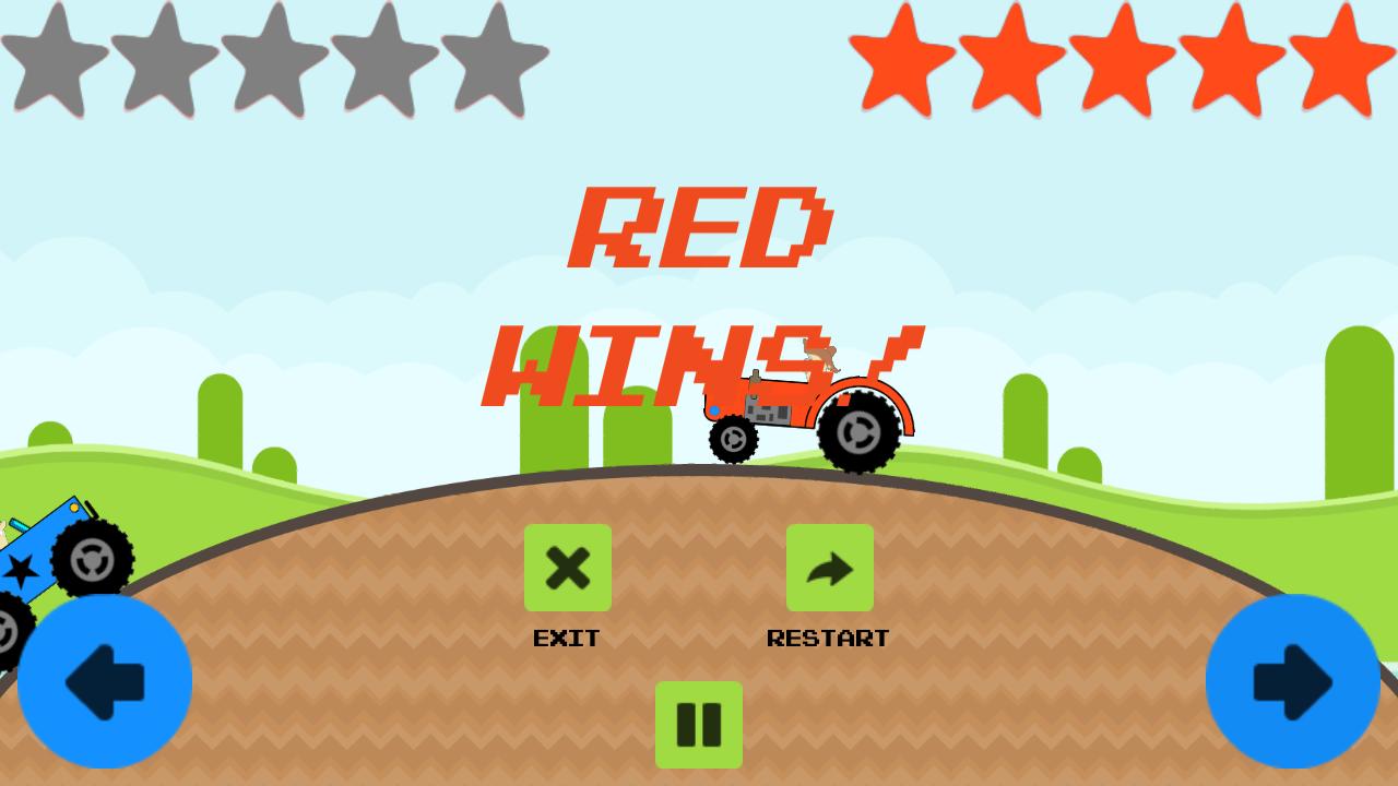 Il s'agit d'une bataille automobile de 2 joueurs avec des véhicules et des étapes aléatoires. Frappez la tête de votre adversaire aussi fort que possible ou poussez-le hors de la scène! Le premier à obtenir 5 points remporte le match. Il y a aussi le mode 1 joueur avec une IA idiote