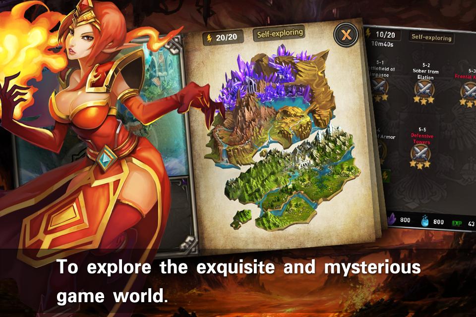 Upgrade system--5 kinds of hero qualities : white, green, blue, purple, orange. You can make the hero to higher quality and become more powerful through upgrade.