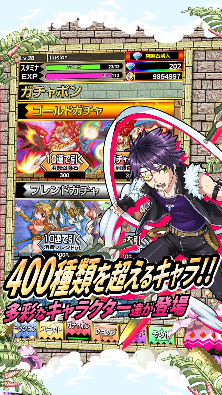 Limited time challenge events are waiting for you. By completing events, you can win characters which are able to upgrade to SR+. Special characters randomly join the party every week and waiting for you challenge. And you can found over 100 hidden equipment in the underground dungeon.