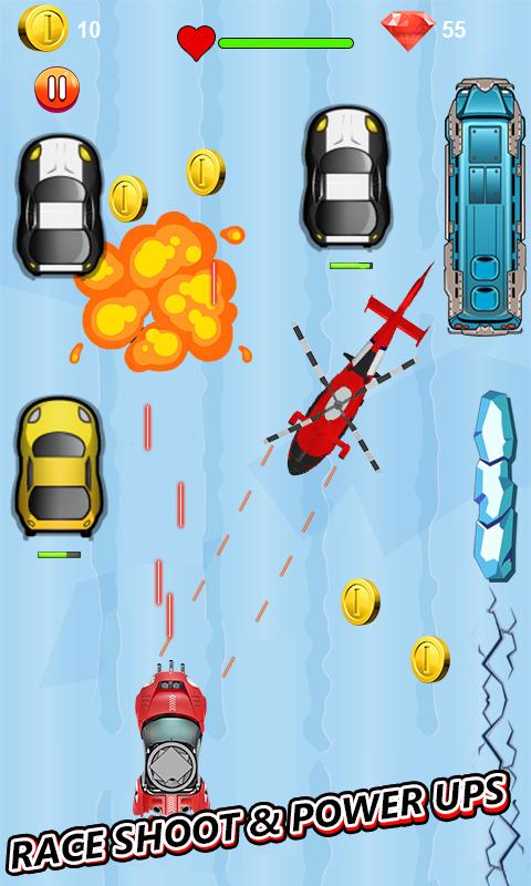 - Race, shoot, and destroy all kinds of rivals while speeding down the road!