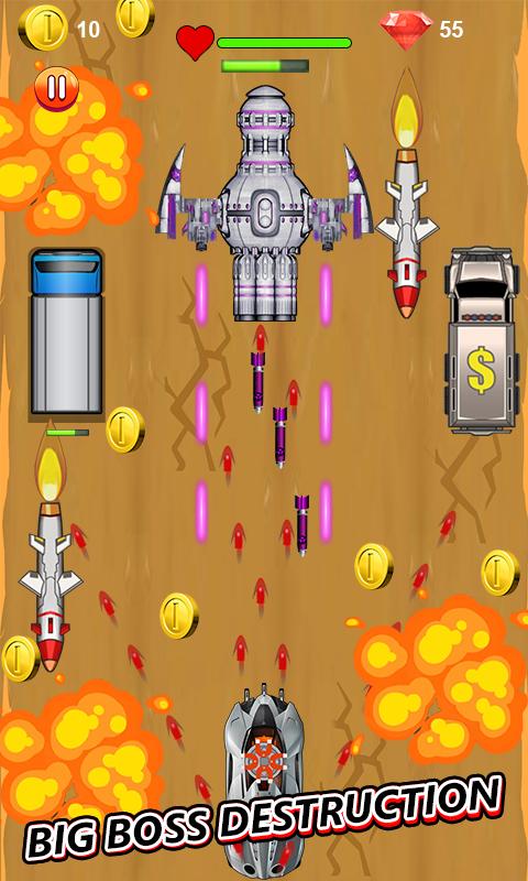 - Dodge away from random rockets, missiles, and roadblocks while jumping over to grab power ups like, boosts, wrenches, score multipliers, and magnets to gain additional advantages over enemies and bosses.