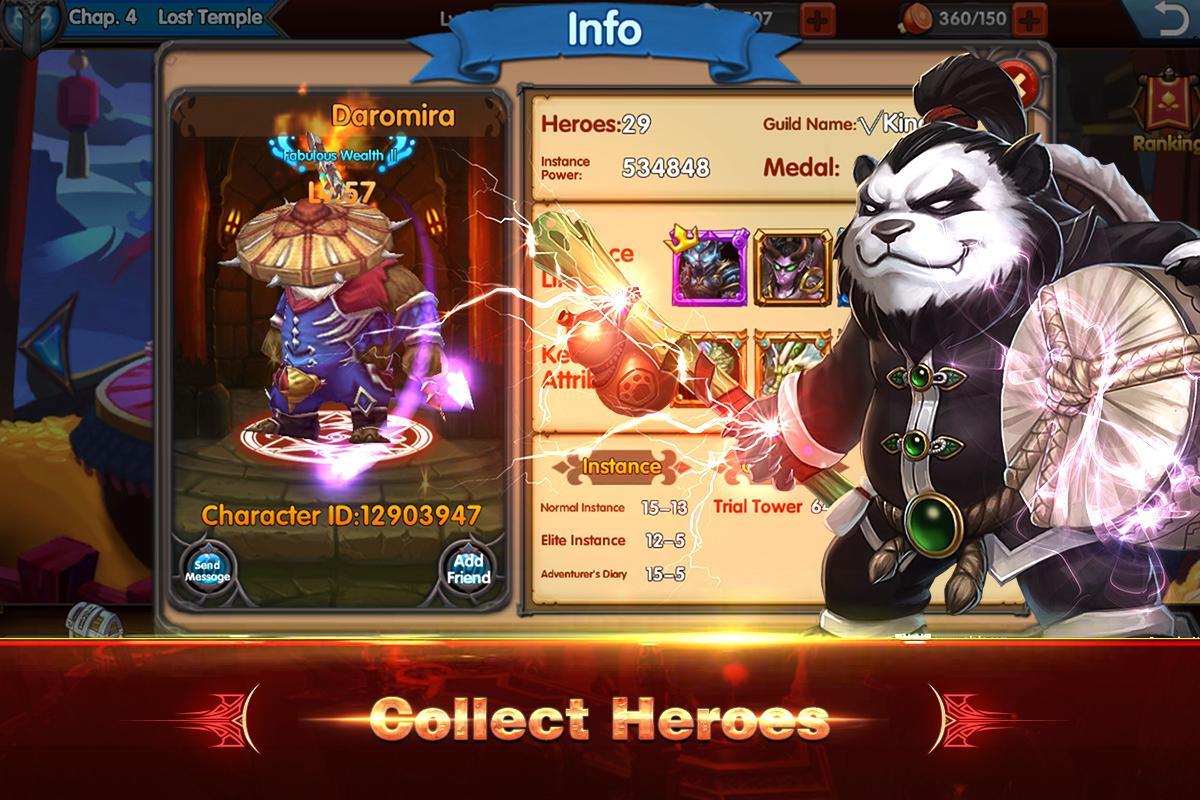 • Upgrade and customize your heroes’ skills and appearances