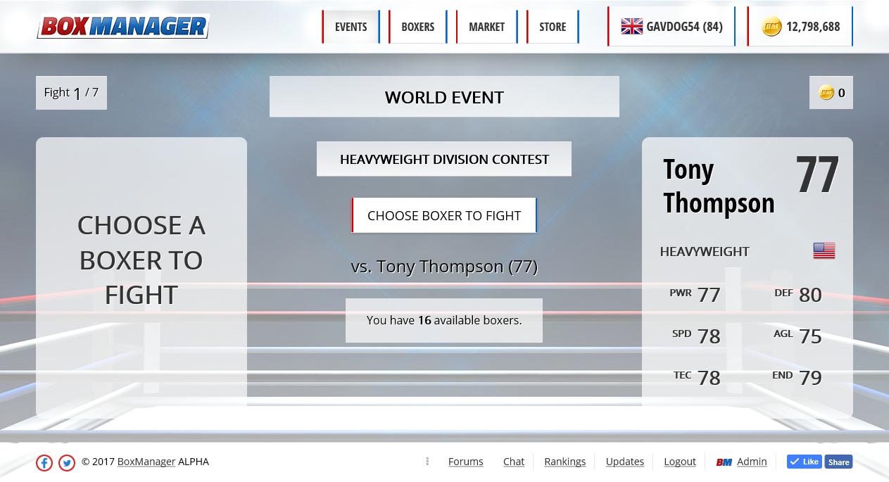 BoxManager is an online multiplayer boxing manager game complete with fight simulation in the form of commentary, an online marketplace where you can trade with other players and much more.