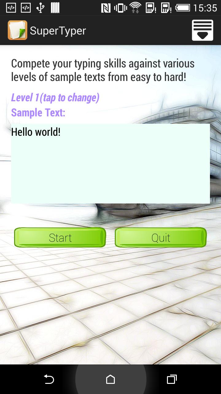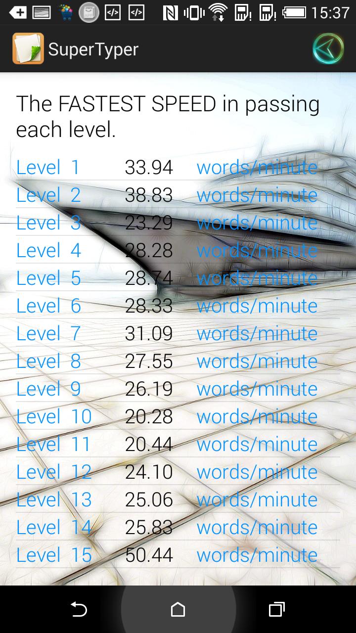 Everyone has to make some typings on mobile devices almost everyday. Sometimes it is quite interesting to get to know how fast one could type on those devices and what's the typing accuracy. Besides, it is also important for users to understand how efficient and accurate an typing method or keyboard is. With Super Typer, you could easily get to know all of these just through playing some simple word-typing games ranging from easy to hard. And Super Typer will give feedbacks on your typing speed and accuracy right after every game. Why not take a try and become the Super Typer, NOW? :)