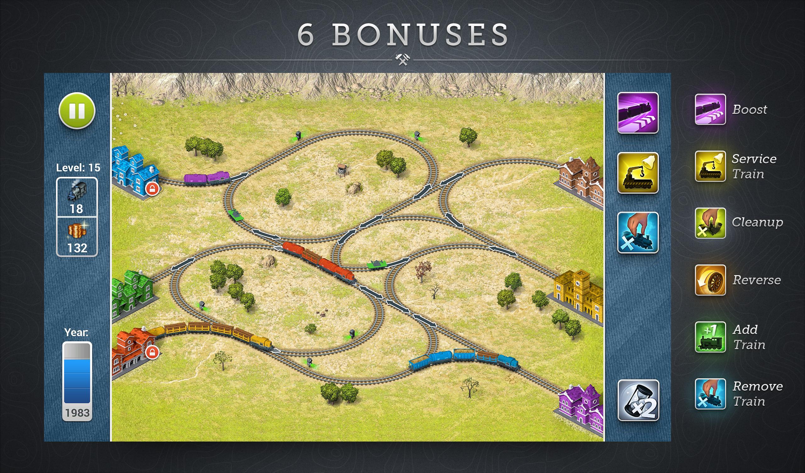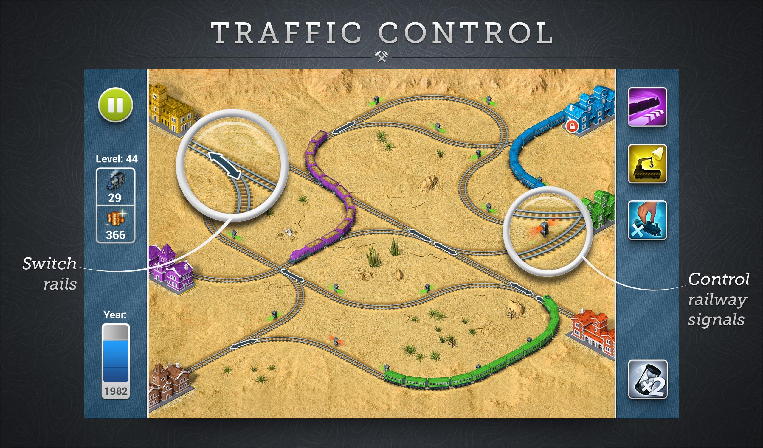 Introducing Rails, the official remake of Shortline Railroad, one of biggest and most addictive gaming sensations of the 90s! You're controlling the railroad today! Build tracks and guide trains to their stations, keeping the rail yard collision-free. Control the railroad switches and signals to lead trains from Point A to Point B, raking in money and earning achievements along the way.