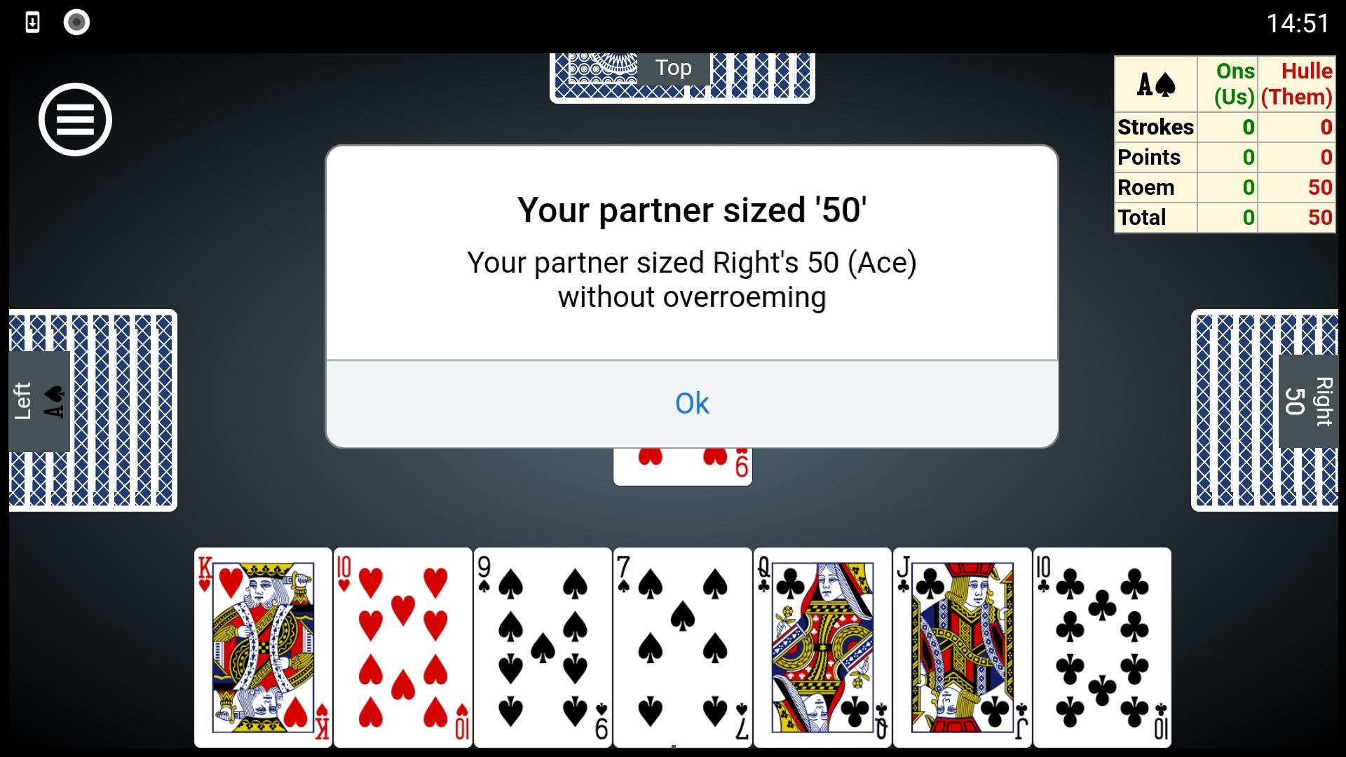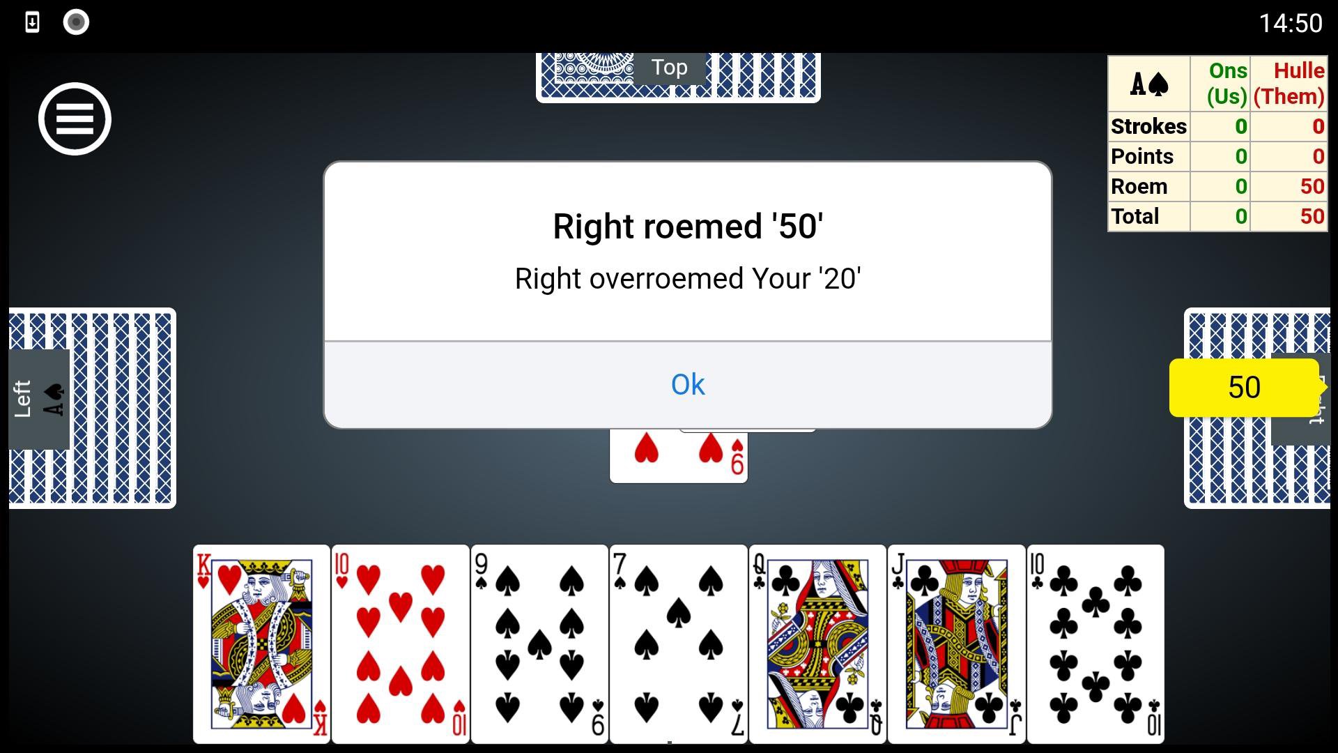 This South African version is very different to the Netherlands' version and can be said to be influenced by another South African card game Thunee which is very popular in Kwa-Zulu Natal. One such difference for example is that Roem is based on certain sequence of cards held in ones hand rather that cards discarded to a trick.