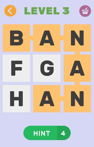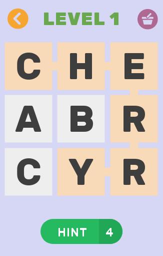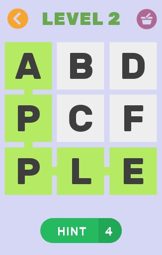 The game is very simple; it consists of more than 140 levels, which will increase in difficulty as you progress. You will start with the most common fruits and vegetables and in the final levels you will find more exotic fruits and vegetables with more difficult names. If you do not know the name of a fruit, you can ask a friend for help or use the hints.