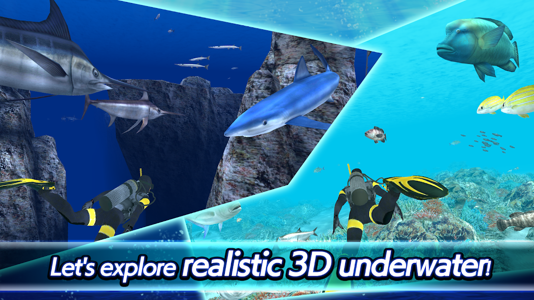 You can play 50 different types of mission including collect treasure chests, hunt tropical fish, and fight with ferocious shark boss!