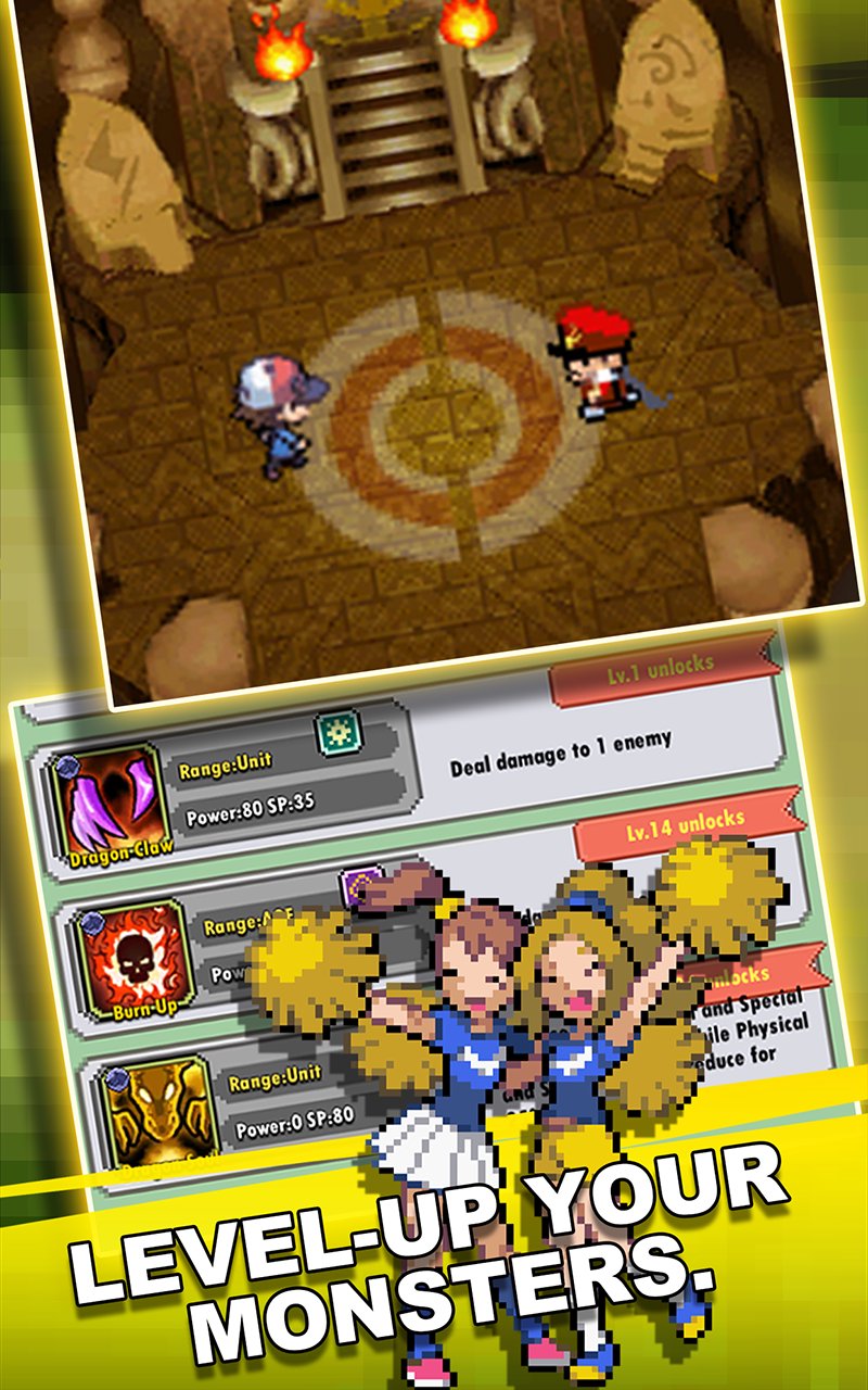 Rich features and methods to increase the power of your monstes and build up the best team!