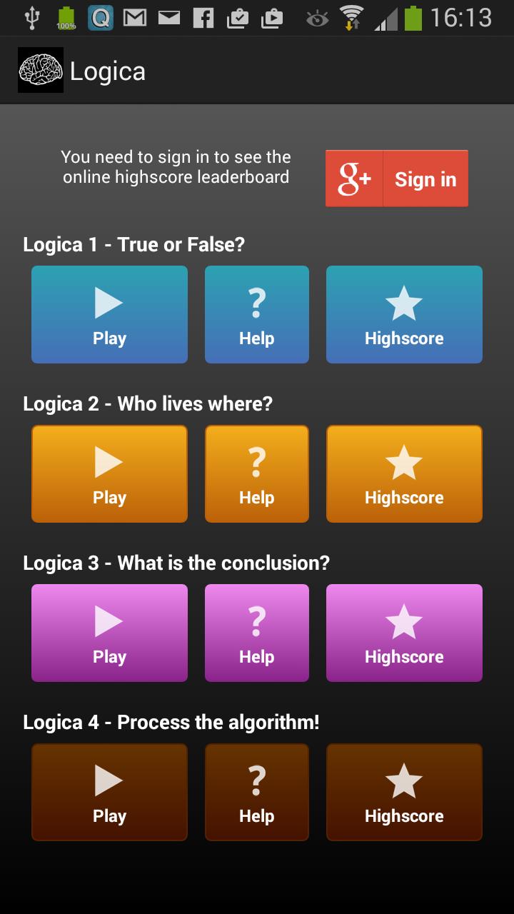 Try to beat your own highscore on all 3 different game variations of Logica. Compete against your friends when trying to beat their highscore, or compare your performance with players from all over the world! Play Logica, the advanced logic game!