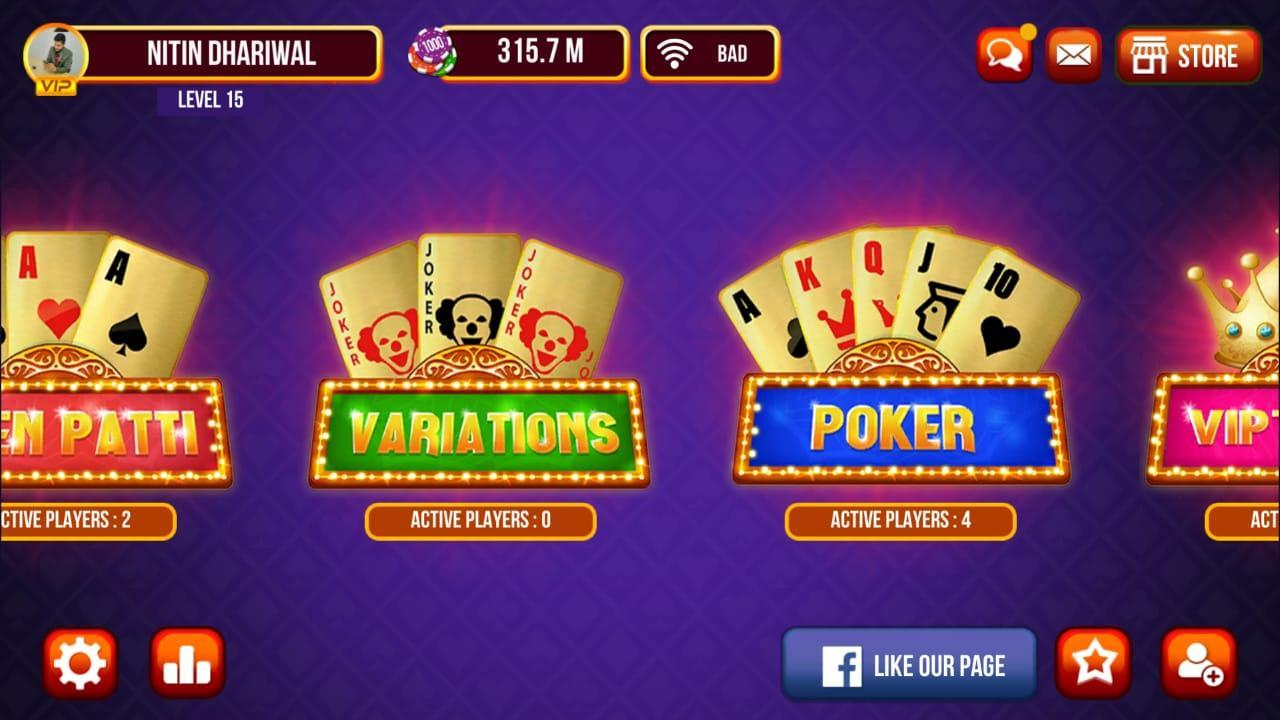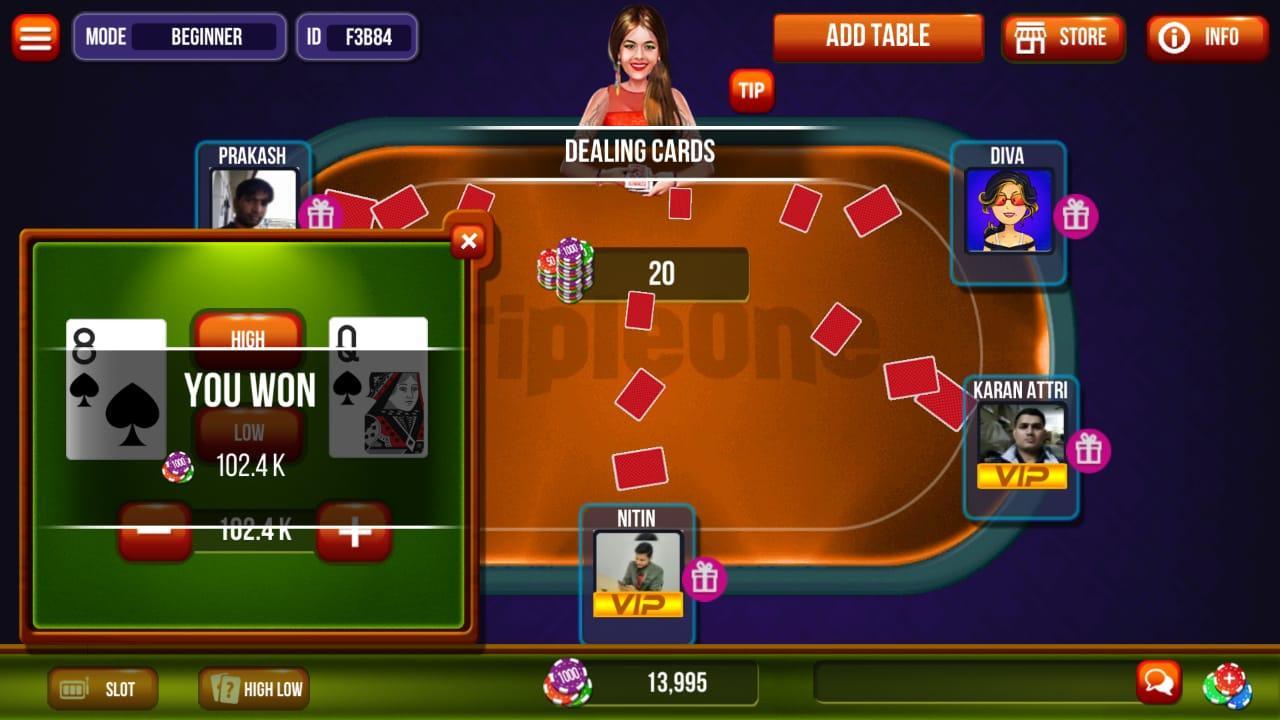 Join us and test your luck! Play Triple One Poker and Teen patti, invite friends to your tables or compete with millions of real players from around the world with this teen patti game! Play this teen patti three and poker game to win chips!