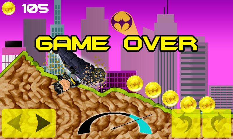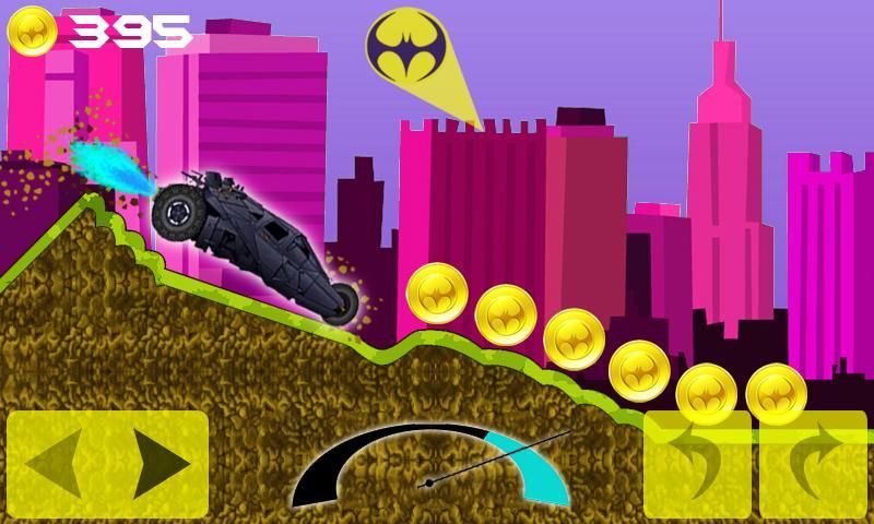 Control super hero BAT as an uphill racer to climb hills with the most realistics control. Face all the challenges of Gotam City in uphill & downhill environment. Super hero BAT is really mad about the criminals in Gotam City, he wants to race and climb to top mountain with his super car. While climbing to the top, you can choose other super vehicles such as car, jeep, hill climb truck, and bike. You need transportation and getting high score to win in this game. Other than that, you can also upgrade your car and transport in hills by driving and climbing.