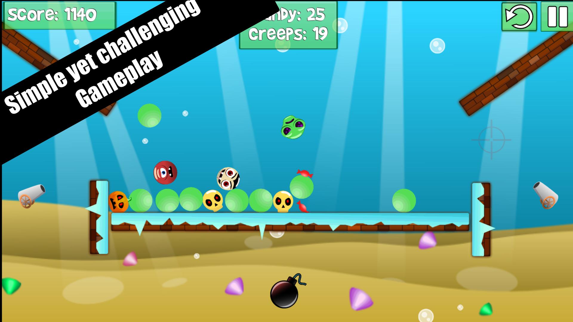 Stop the Crazy Creeps from falling to the bottom of your screen by shooting them with candy! Keep an eye on your candy reserves, carefully aim and fire in this fun-packed game.