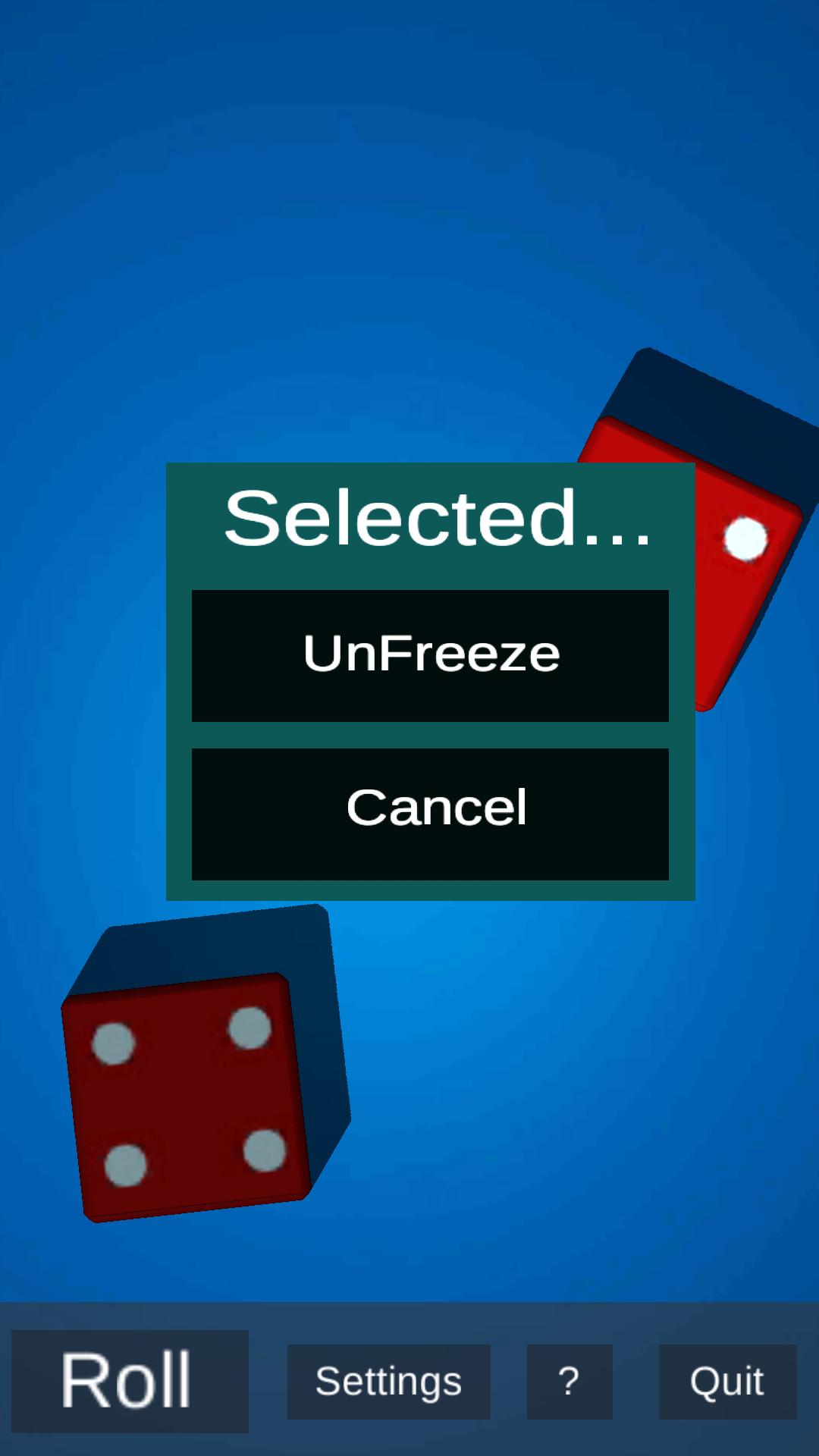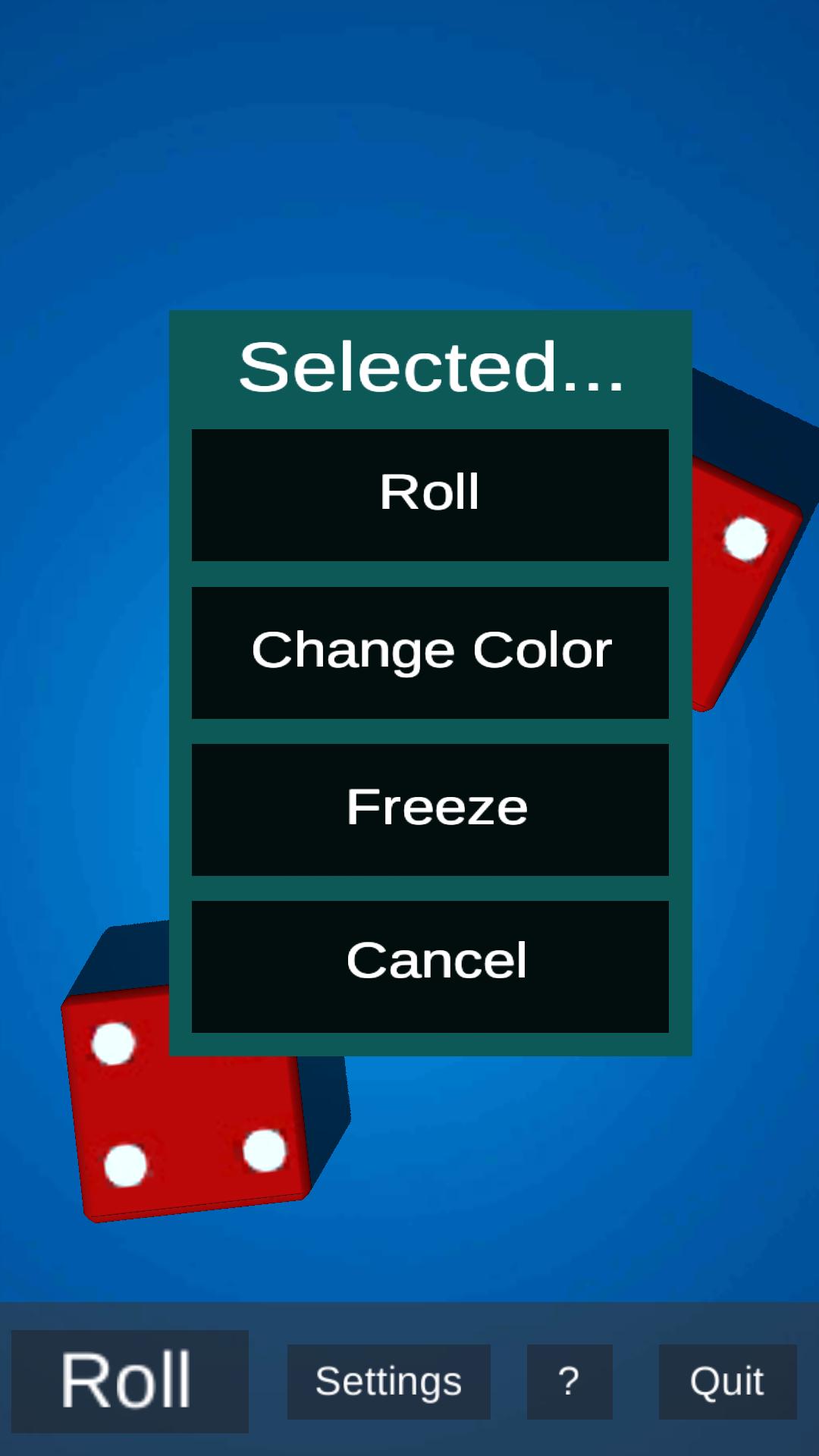 *Roll dice with tap of a button or phone shake.