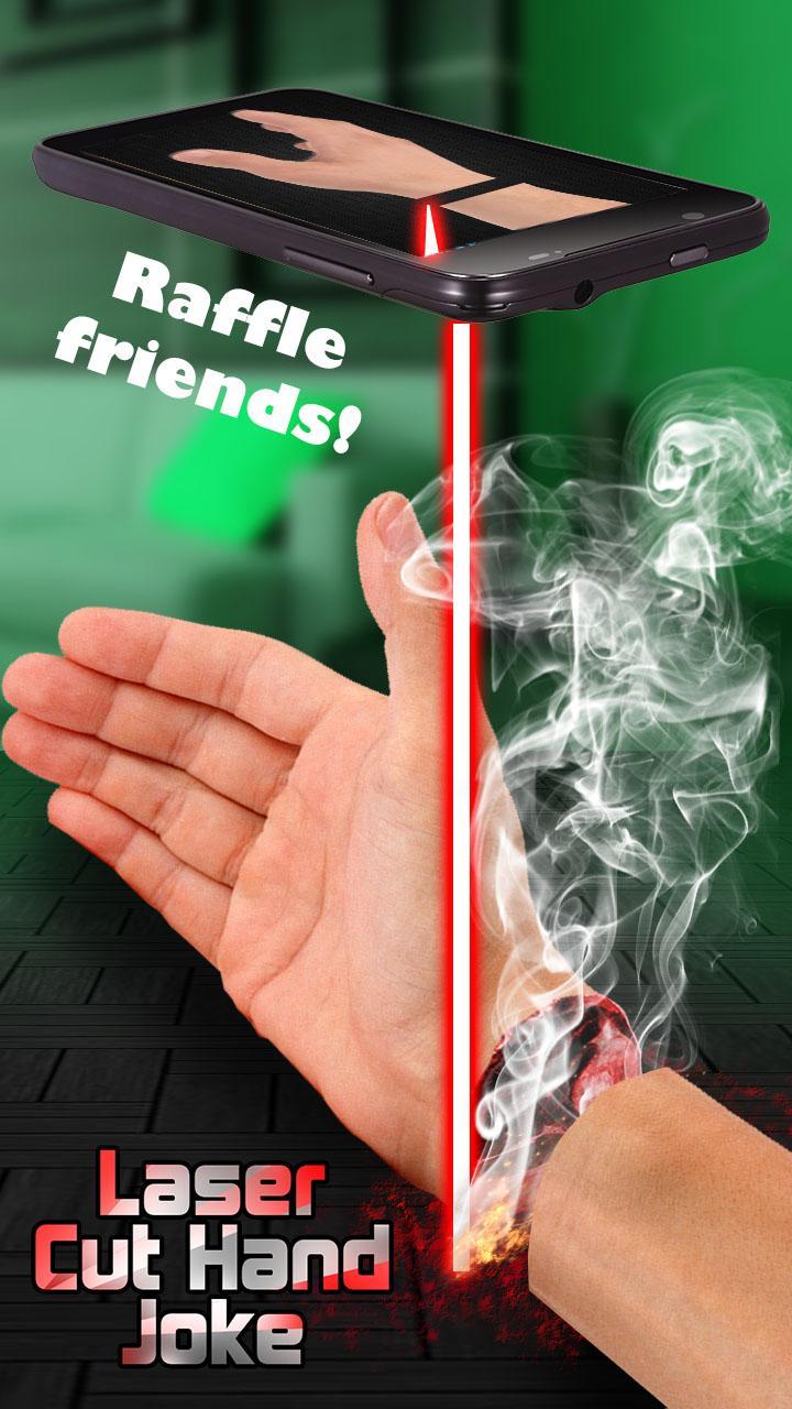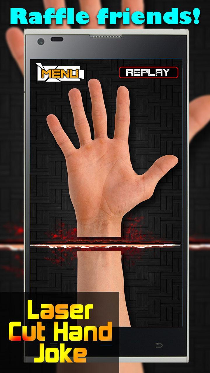 Laser Cut Hand Joke - a simulation game where you can make a kind of a joke, you cut off your hand! Raffle and frighten your friends! They will be surprised! Scarecrow for adults only!