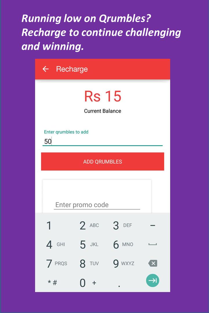 QrumbleBox is a 2 player quizzing game where you can challenge your friends to a quiz and win PayTM cash. It's simple -Challenge Friends, Play Quiz, Bet PayTM cash.