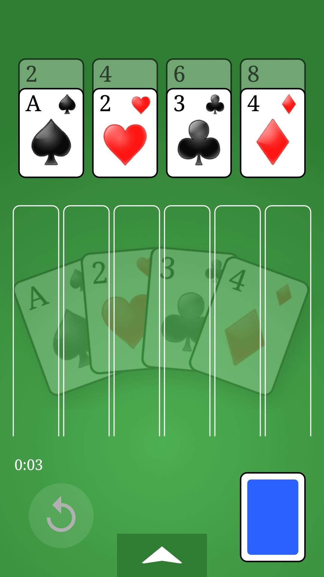 The game starts with 4 higher stacks, with the cards: A, 2, 3 and 4.