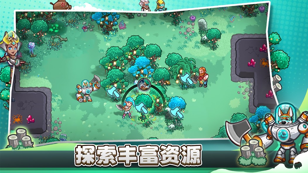 Woohoo! A group of space adventurers land on a habitable planet humans never set foot on before, almost like something out of a fairytale. It's as if you've entered an alien paradise with beautiful forests and fields appearing before your eyes, waiting for you to farm, explore, develop technology, and establish your unique home. But I must tell you, some bad guys are coming, ready to make life difficult for you and interfere with your progress. Your top priorities are to make your equipment quickly and hone your powers to defend this wonderful world!