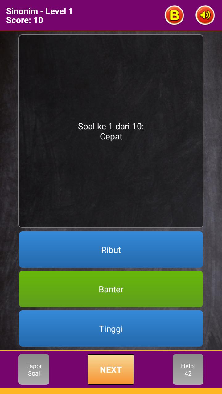 Guess whether the words available are included in the synonym or antonym. Consists of 10 issues and 75 levels. 2 Answer Options.