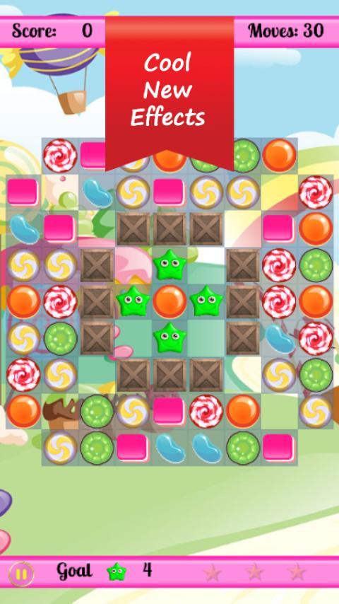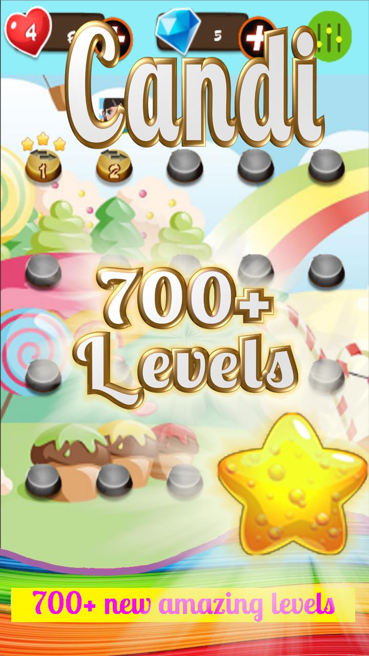 Candi is a fun match 3 candy jewels game, there are many different levels, each level has different rules, limited moves, limited time, blow special candy bombs, on Candi you just need to switch or match three or more Candies. you can freely enjoy the feeling of bombing holes in the screen, or collecting the special Candies, and advancing to higher levels of candy smashing on the Candi world.