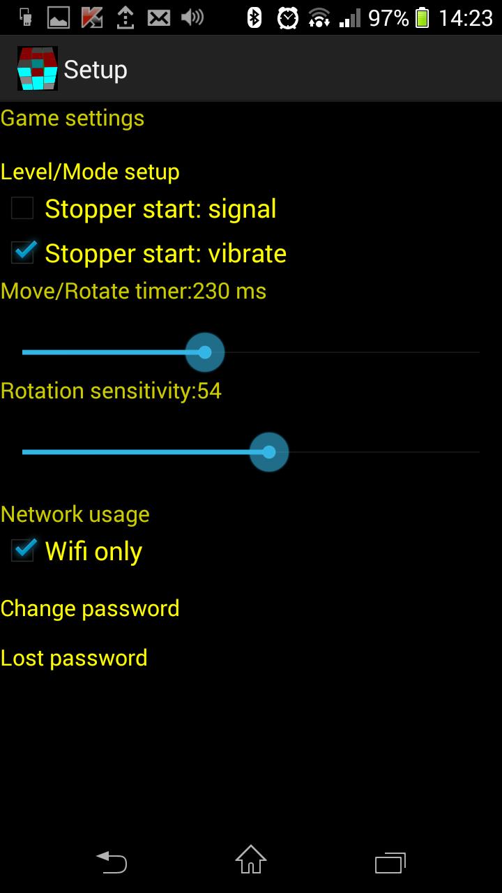 - Level/mode setup: you can choose your level and mode of play. This option is available upon launching the game.