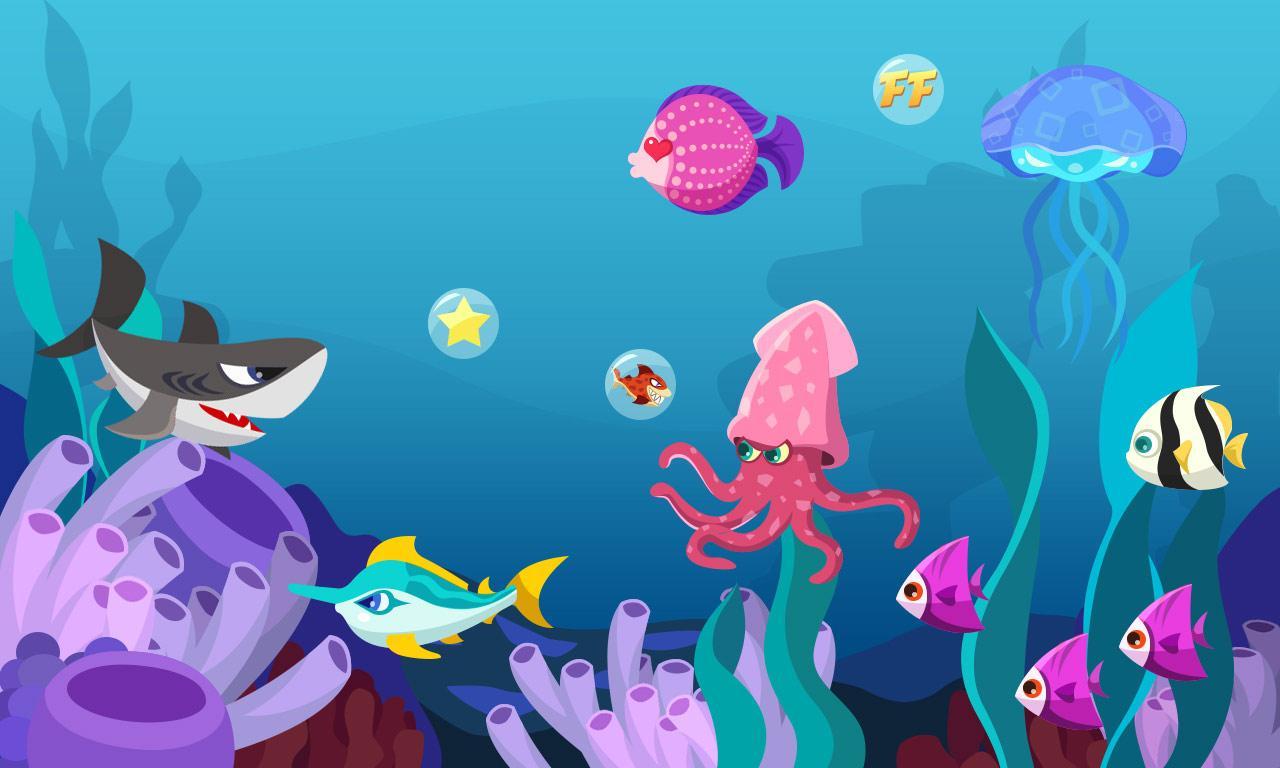 Quiet deep water, the fish are chasing each other, naughty with magical bubble chase, terrible fish come, everyone run... The fundamental rules of big fish eat small fish, sea world.