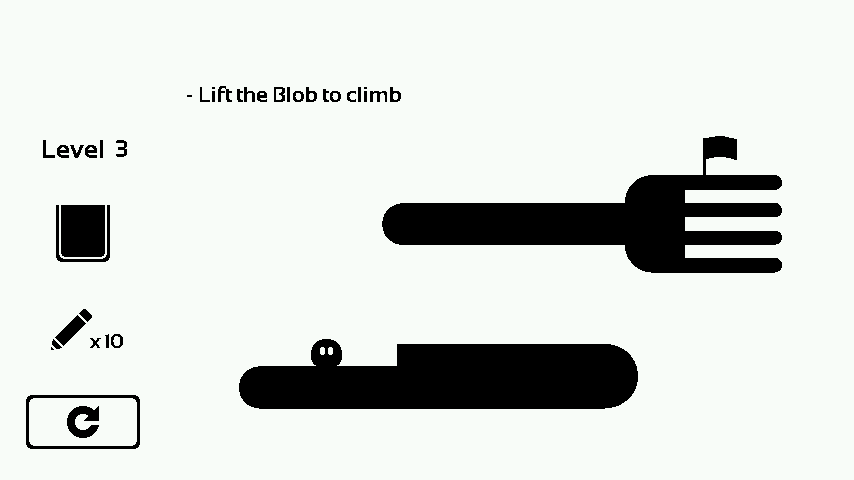 By drawing on the screen in black or white, open paths and push each blob to its respective flag.