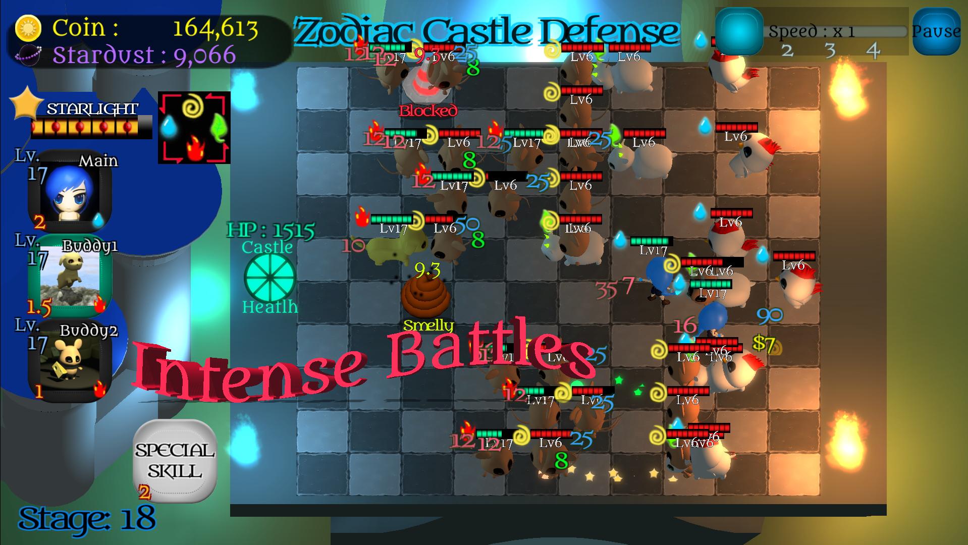 Defend the Zodiac Castle against enemies with your various Zodiac characters.