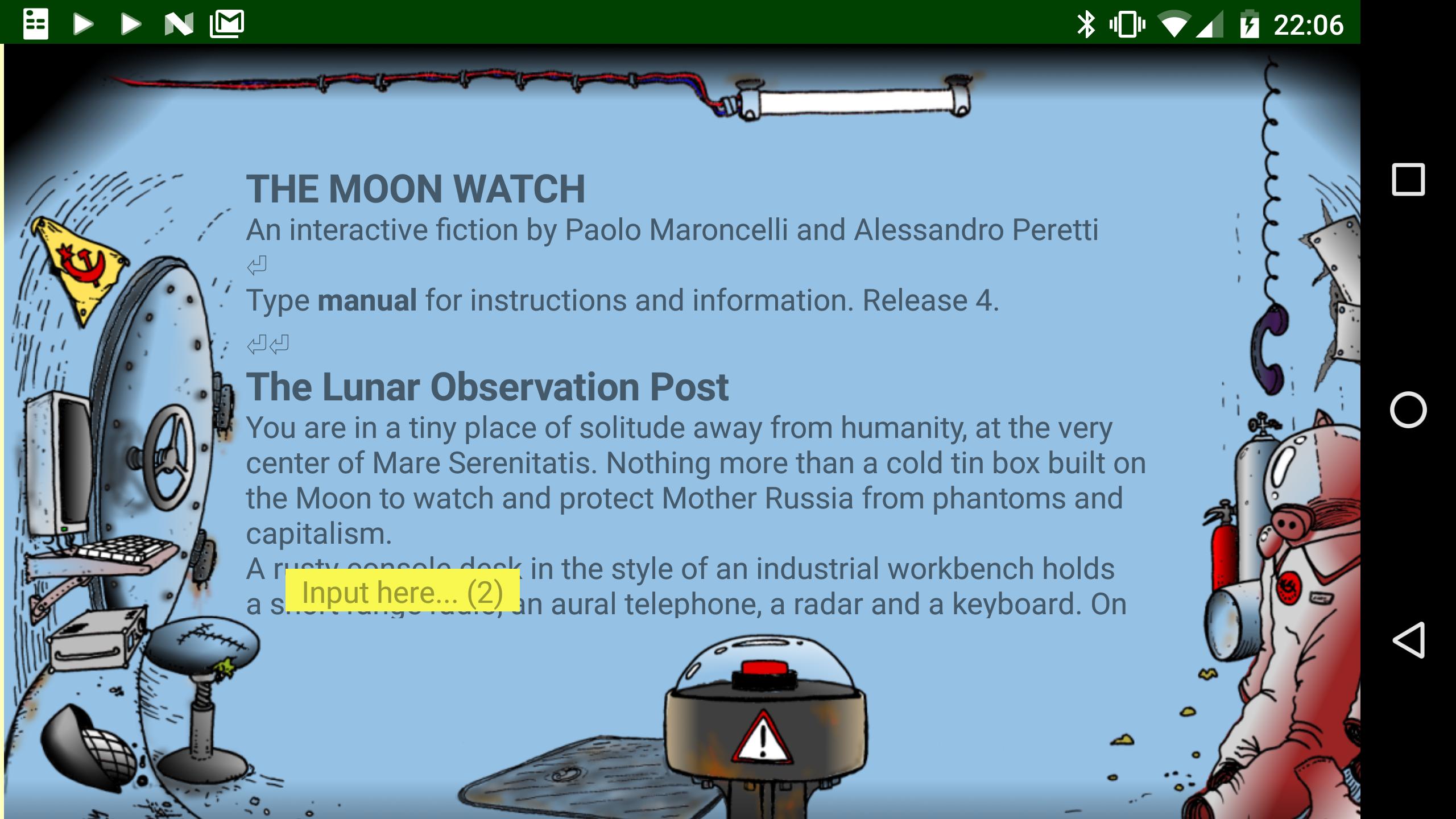 In these early months of release, a Bluetooth or USB hard keyboard is suggested and a screen size of 7 inches or larger. Considerable labor is still needed to make Thunderword usable on 4" and 5" screens due to the text-entry of parser interactive fiction stories. Developer suggestions are welcome.